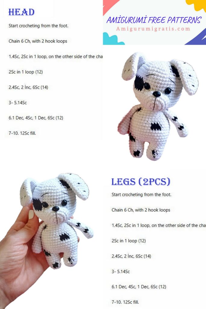 Dalmatian Dog Amigurumi Free Pattern, Create your own adorable black and white amigurumi animal with this free crochet pattern! Using simple stitches and basic shaping, this beginner-friendly amigurumi tutorial guides you step by step. You’ll need yarn in two colors, a small crochet hook, safety eyes, and stuffing to bring your cute plush toy to life. The pattern includes clear instructions for crocheting the head, body, legs, arms, ears, and tail. This easy amigurumi Dog project is perfect for handmade gifts, baby toys, or animal lovers. Follow this free amigurumi pattern today and crochet a sweet animal friend!