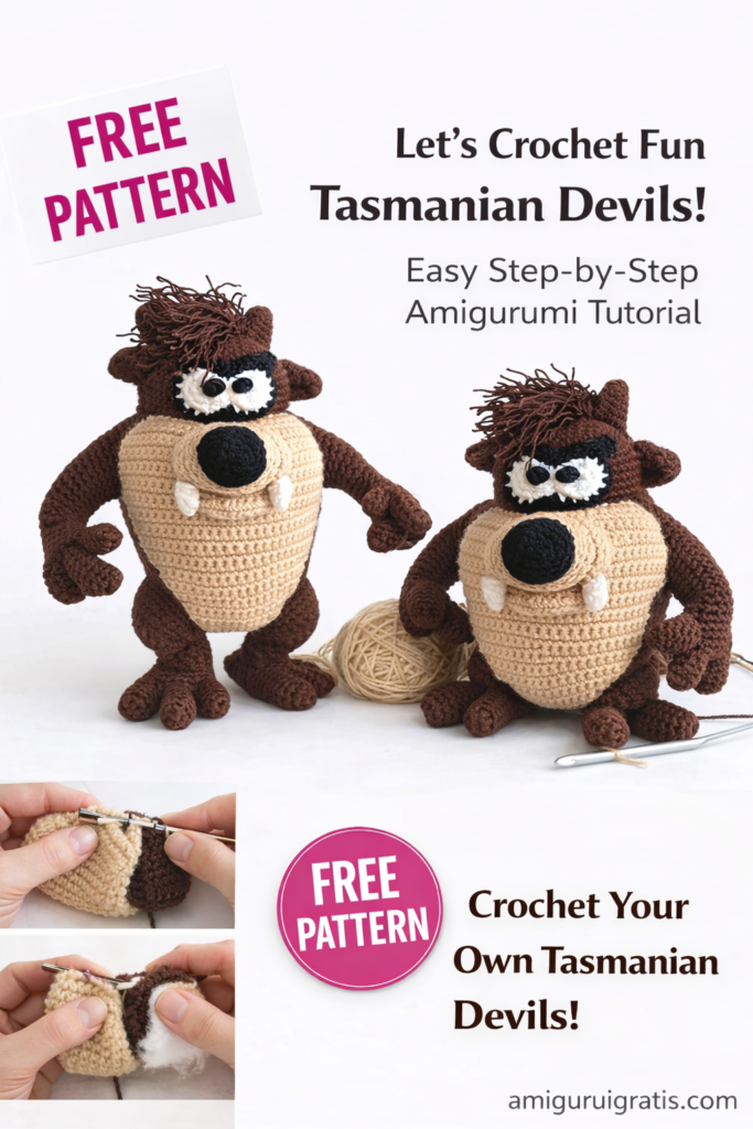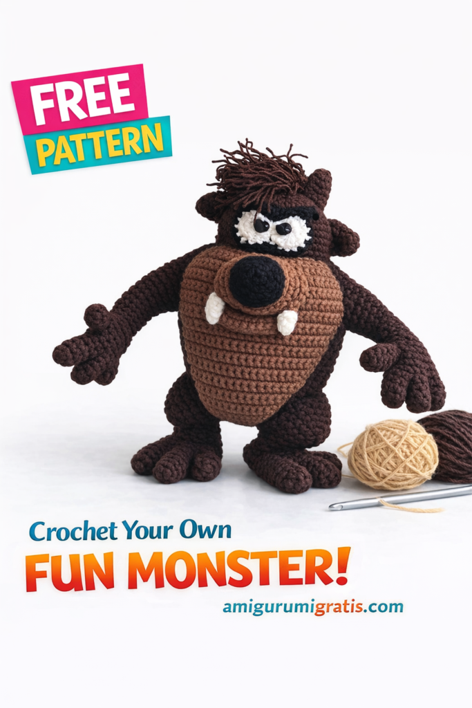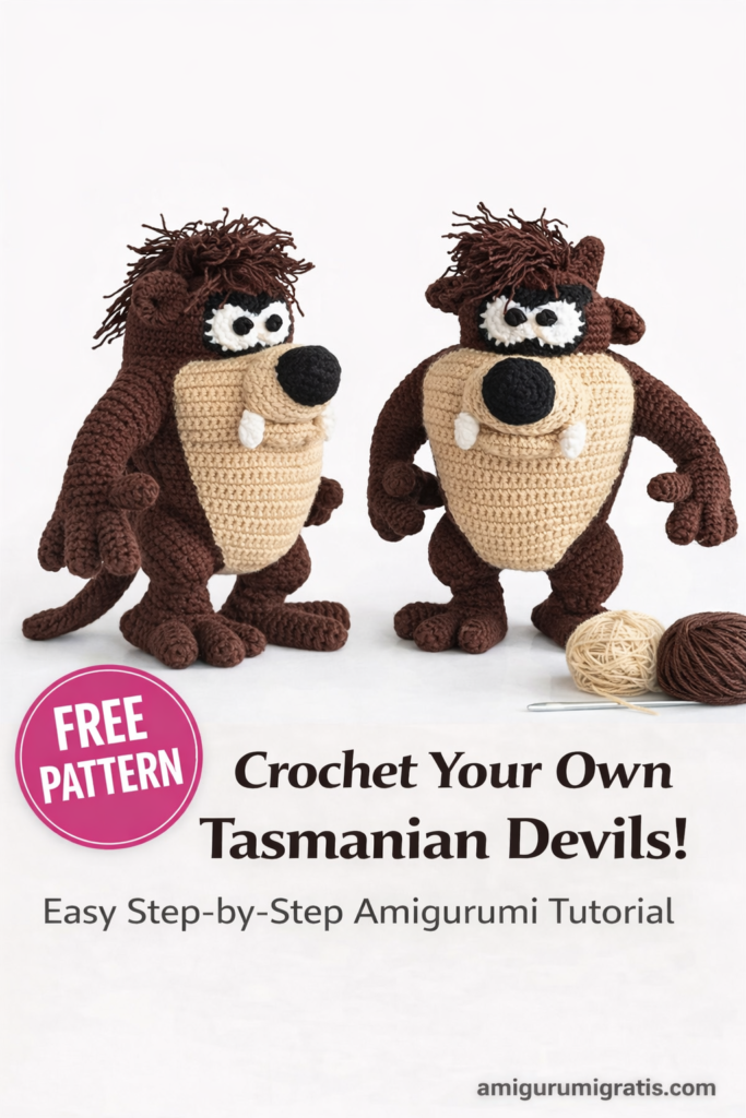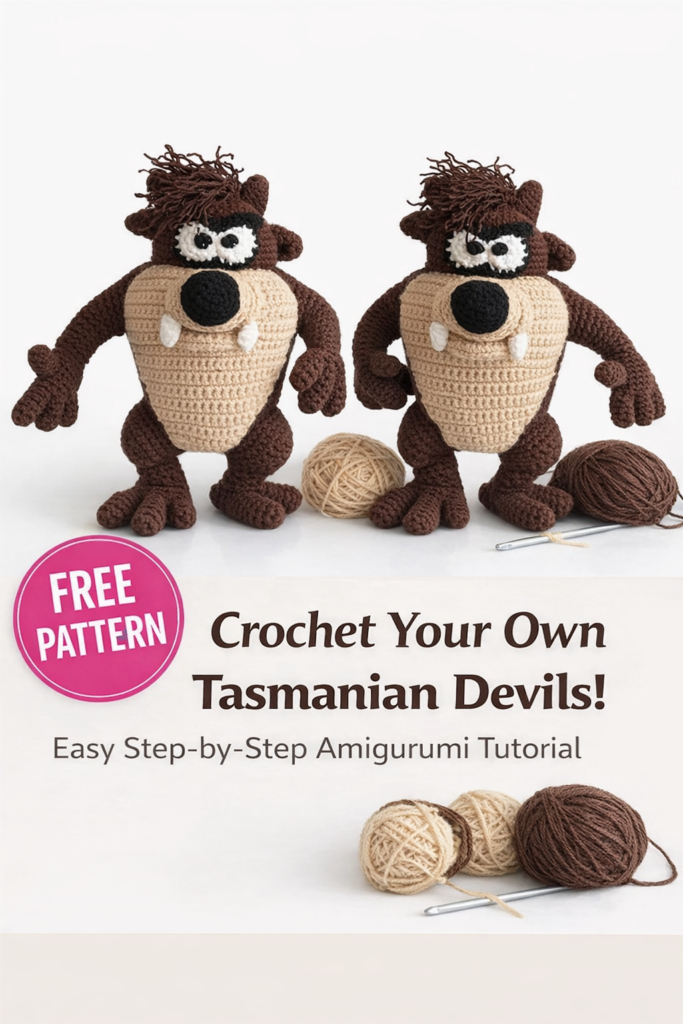 If you are looking for a free amigurumi Tasmanian monster pattern, you’re in the right place! This cute and detailed crochet Tasmanian Devil (Taz) amigurumi is perfect for both beginners and experienced crocheters who love character dolls. Designed with clear instructions and standard US crochet terms, this free crochet pattern helps you create a fun and expressive handmade toy step by step.
