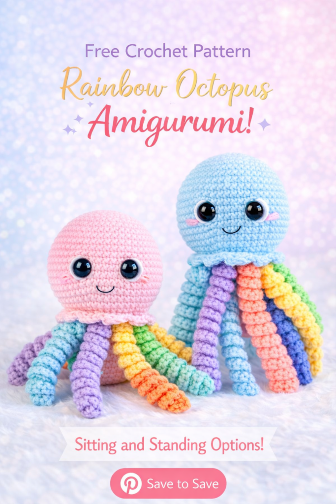 If you are looking for a cute and easy amigurumi project, this Rainbow Octopus Amigurumi Free Pattern is perfect for you. This adorable crochet octopus is designed to be quick to make, beginner-friendly, and ideal for anyone who loves amigurumi free patterns and colorful crochet toys.