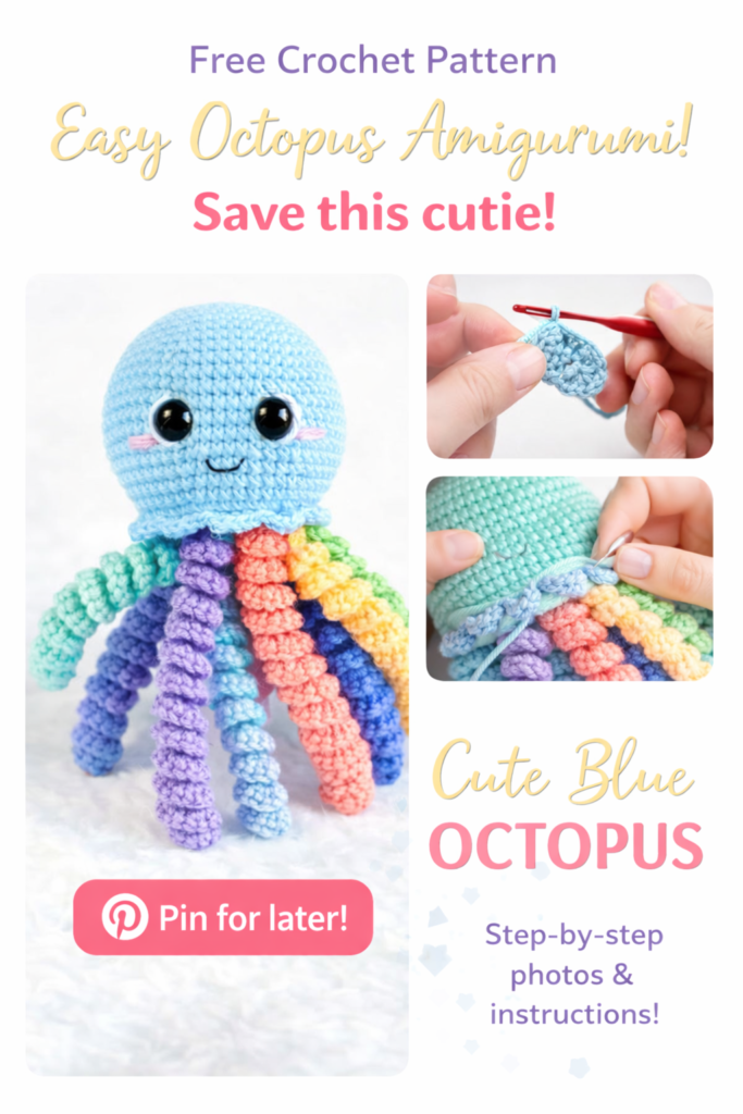 This easy octopus amigurumi pattern uses basic crochet stitches and works up fast, making it a great choice for handmade baby toys, gift ideas, or crochet market products. Whether you are a beginner or an experienced crocheter, this free crochet octopus pattern will help you create a soft, playful, and eye-catching amigurumi toy.