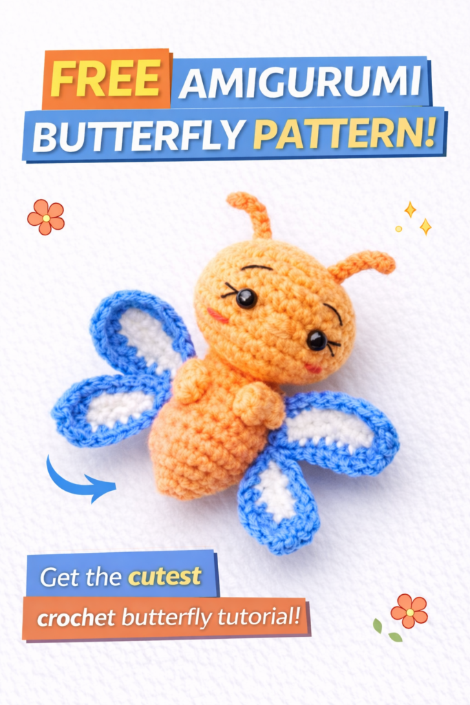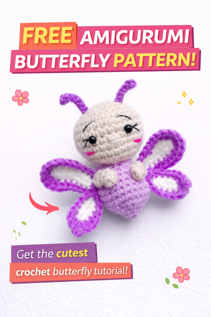 If you are looking for a sweet and beginner-friendly crochet project, this Amigurumi Cute Butterfly Free Pattern is perfect for you! This adorable little butterfly is soft, colorful, and quick to make, making it a great project for both beginners and experienced crocheters.