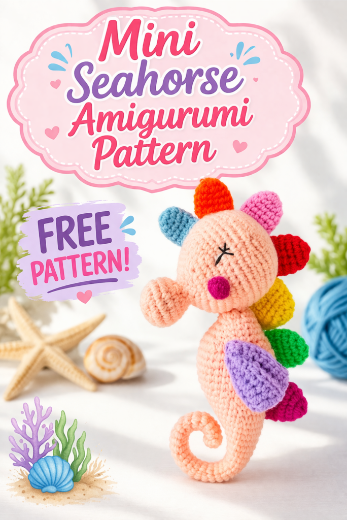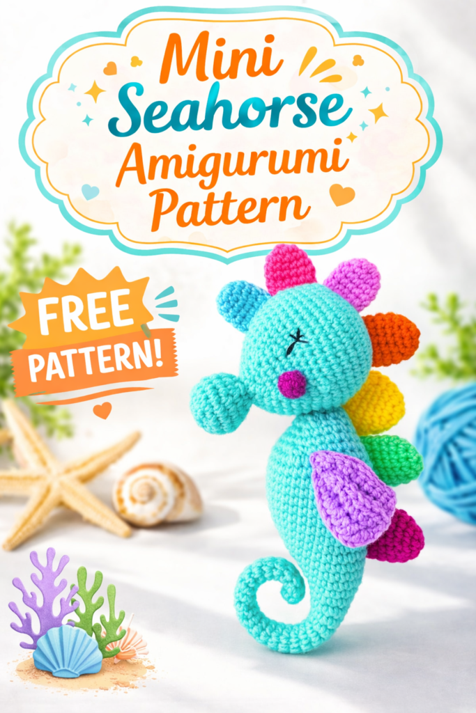 Bring the ocean to life with this Mini Seahorse Amigurumi Pattern | Cute Crochet Sea Horse design! This adorable tiny seahorse crochet pattern is perfect for anyone who loves amigurumi sea animals, mini crochet toys, and cute handmade plushies. Whether you’re a beginner or an experienced crocheter, this easy seahorse amigurumi pattern will guide you step by step to create a charming small crochet seahorse that fits perfectly in your palm. Ideal for gifts, keychains, nursery decor, or ocean-themed collections, this mini seahorse crochet project is both fun and relaxing to make.