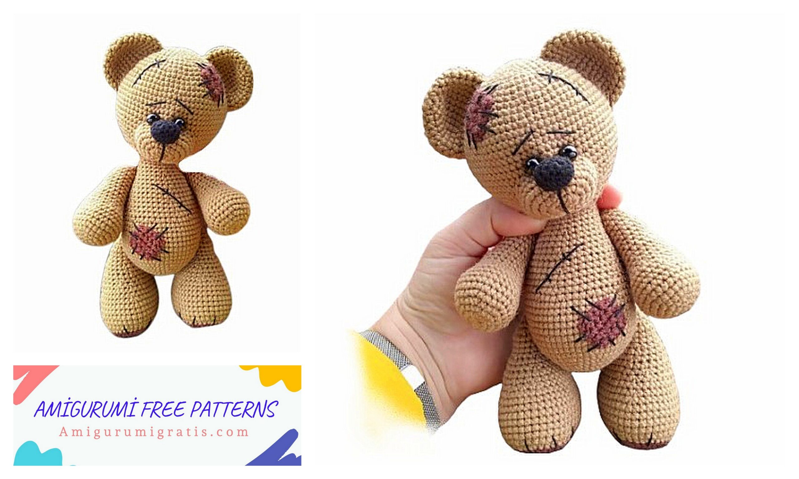 REQUIRED MATERIALS FOR TEDDY: The main plush yarn of Himalaya Dolphin Baby – 1 skein (or a little more – depending on the individual knitting density) Black yarn for embroidering eyelashes and tightening the muzzle – at your discretion (I used Alize FOREVER acrylic) Semi-cotton or acrylic yarn to match the main one for sewing parts (I sew with plush yarn) Filler – holofiber Hook – No. 3.5-4.5 for the body, depending on preference (I used No. 4) Safety or sewn eyes – diameter 9.5-10 mm (I advise – sewn eyes) Black velvet nose on screw fastening – width 2.0 cm, height – 1.5 cm Needle for sewing details and embroidery Scissors Marker for marking the beginning of a row REQUIRED CLOTHING MATERIALS: Semi-cotton yarn – Gazzal baby cotton XL – slightly less than 1 skein for overalls and bandages, 0.5 skein for shorts – pink No. 3411, purple No. 3414, turquoise No. 3426 Semi-cotton yarn – Alize cotton gold – 1/3 skein – pink No. 33, jeans No. 40 Hook – No. 2.1 Knitting needles – No. 3 mm and No. 4.5 mm Buttons – … Read more